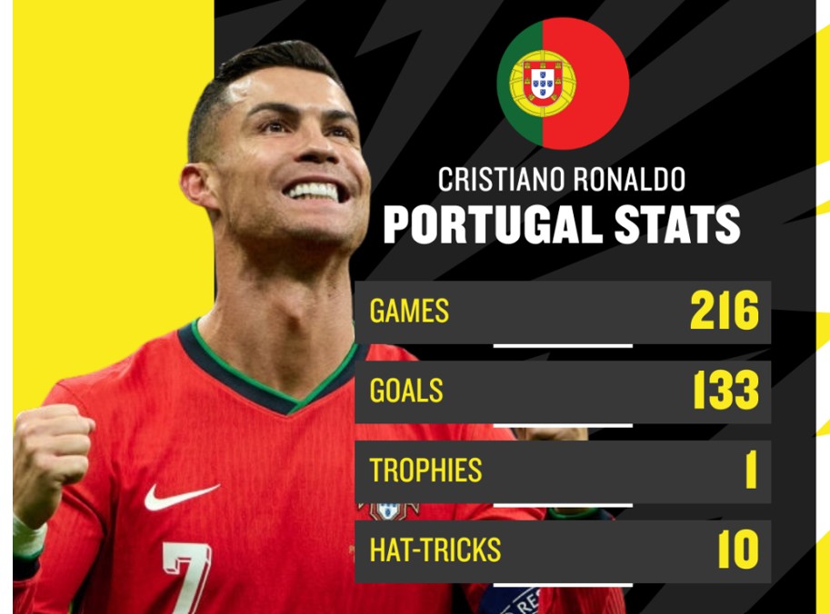 Ia memegang rekor pencetak gol terbanyak dalam sepak bola internasional, dengan mencetak 133 gol dalam 216 pertandingan untuk Portugal.