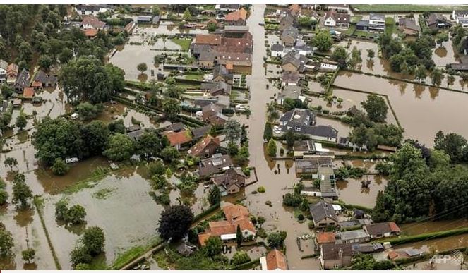 Luksemburg dan Belanda juga diguyur hujan lebat, menggenangi banyak daerah dan memaksa ribuan orang mengungsi di kota Maastricht.