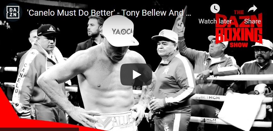 Lebih lanjut Bellew mengatakan bahwa Canelo harus melakukan yang lebih baik; beberapa orang akan mengatakan itu adalah pertarungan dari apa yang dia lakukan. Anda ingin menetapkan standar setinggi itu? Anda harus mempertahankannya dan tetap di sana. Dia luar biasa; dia masih di atas sana pound-for-pound.