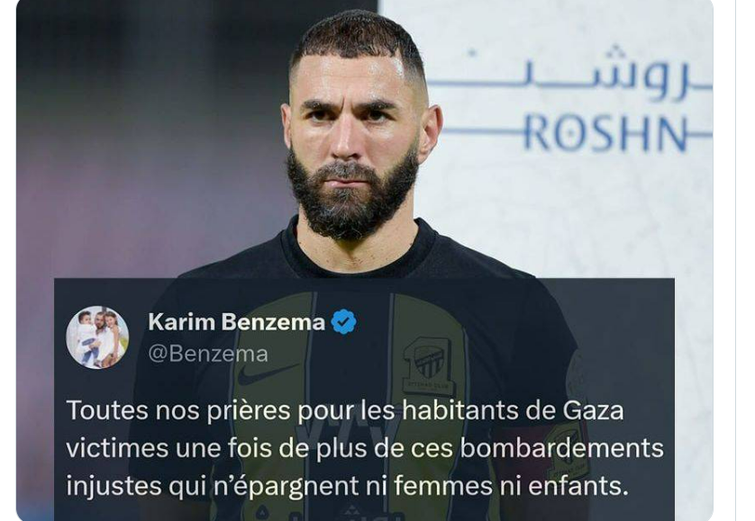 Dalam postingan Instagram baru-baru ini, Karim Benzema mengeluarkan dukungan dan permintaannya agar semua pemboman dihentikan di Jalur Gaza, membela anak-anak dan perempuan dari bahaya apa pun. Dia menulis: "Semua doa kami panjatkan untuk seluruh penduduk Gaza yang sekali lagi menjadi korban pemboman tidak adil yang tidak memaafkan perempuan dan anak-anak."