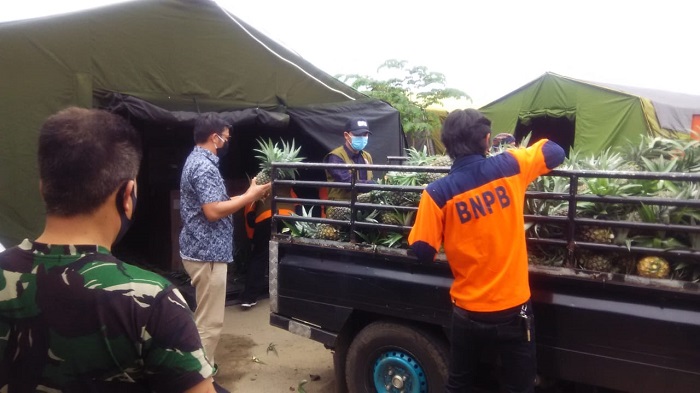Hadir pada acara tersebut Asdep Pertanian dan Perkebunan Deputi Produksi dan Pemasaran Kementerian Koperasi dan UKM Dewi Sarlen. Setelah diterima BNPB, Nenas didrop di dapur umum RS Khusus Corona di Wisma Atlet Kemayoran, Jakarta.