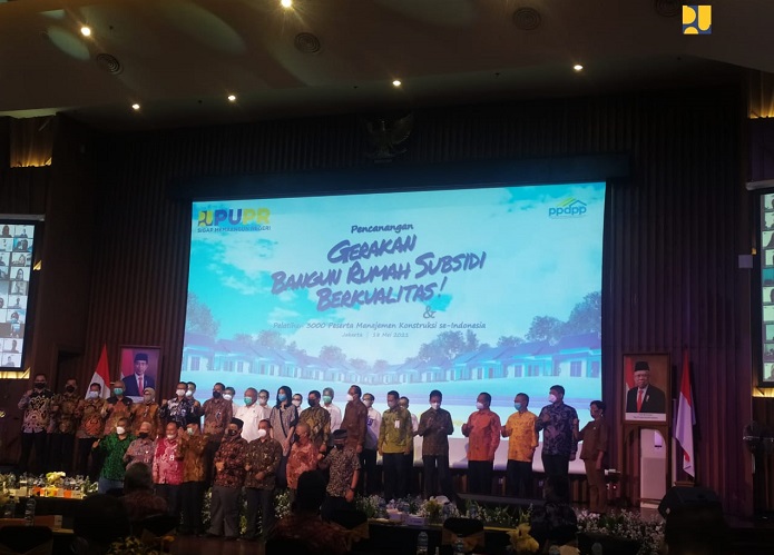 Kementerian Pekerjaan Umum dan Perumahan Rakyat (PUPR) mencanangkan Gerakan Bangun Rumah Subsidi Berkualitas sekaligus membuka Pelatihan 3000 Tenaga Kerja Manajemen Konstruksi bagi Pengembang, di Auditorium Kementerian PUPR, Selasa (18/05/2021). Acara ini merupakan upaya Kementerian PUPR dalam memenuhi kebutuhan hunian layak bagi masyarakat berpenghasilan rendah.