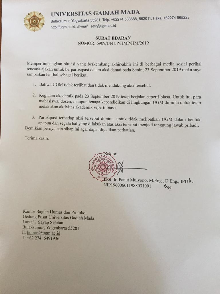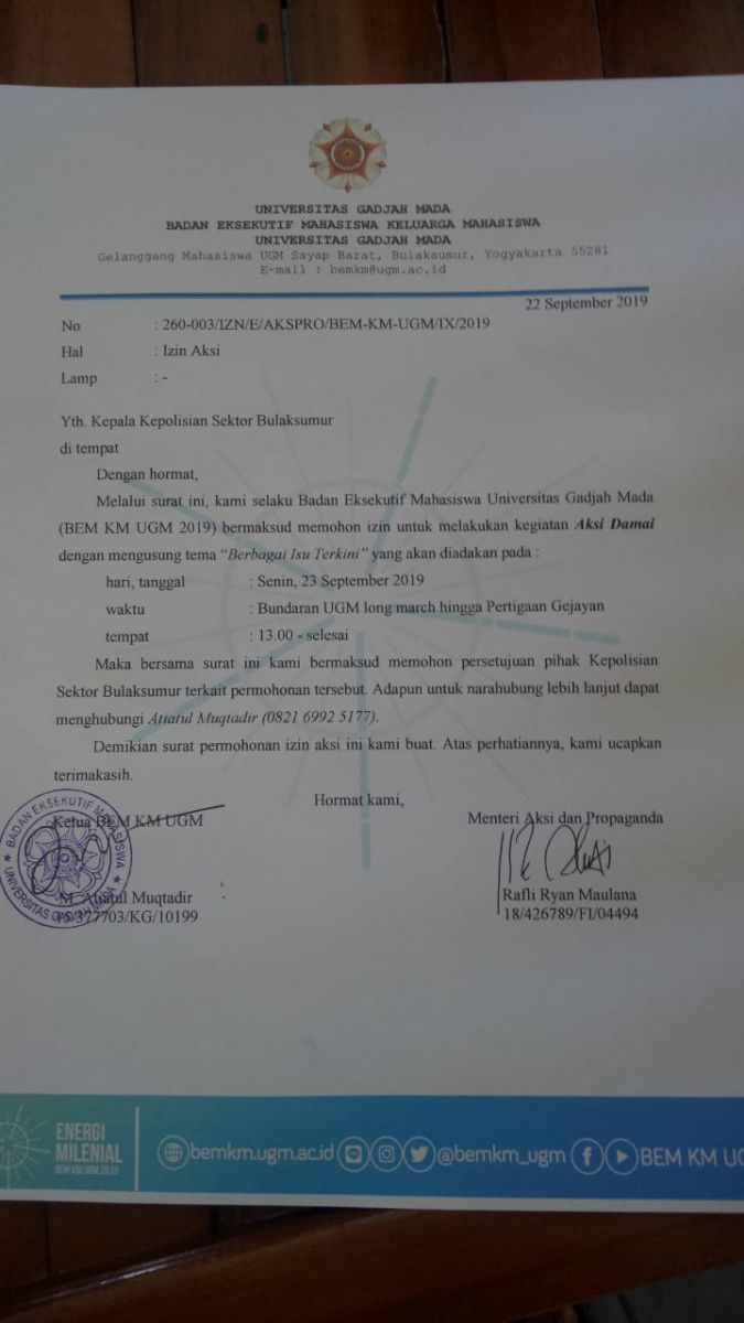Sebelumnya diwartakan ribuan mahasiswa di Yogyakarta pada Senin(23/9/2019), menggelar aksi unjuk rasa dengan titik kumpul di kawasan Gejayan, Sleman. Aksi ini merupakan respon dari perkembangan situasi politik tanah air yang dianggap bakal kembali ke era Orde Baru menyusul rencana pengesahan beberapa rancangan undang-undang seperti KUHP, KPK dan lain sebagainya.