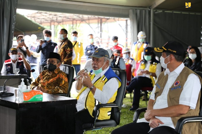 Selain itu, Kementerian PUPR juga mengerahkan sarana dan prasarana air bersih dan sanitasi bagi pengungsi dan masyarakat terdampak, mencakup 6 unit Mobil Tangki Air, 30 unit tangki air, 1 unit mobil toilet, dan 10 unit tenda darurat.