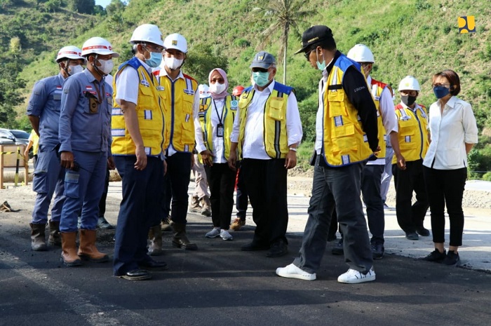 Menteri Pekerjaan Umum dan Perumahan Rakyat (PUPR) Basuki Hadimuljono didampingi Gubernur Nusa Tenggara Barat (NTB) Zulkieflimansyah meninjau pembangunan Jalan Bypass Bandara Internasional Lombok (BIL)- Kawasan Pariwisata Mandalika di Kabupaten Lombok Tengah, Selasa (1/6/2021) sore. Pembangunan bypass sepanjang 17,3 km tersebut akan meningkatkan jaringan jalan pada Destinasi Pariwisata Super Prioritas (DPSP) Mandalika-Lombok sekaligus mendukung konektivitas sirkuit MotoGP yang juga dibangun di kawasan Mandalika.
