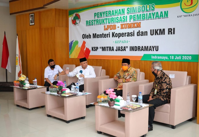 Dalam kesempatan kunjungan ke Kabupaten Indramayu, Teten menyerahkan secara simbolis Program Restrukturisasi Pinjaman/Pembiayaan LPDB- KUMKM kepada KSP Mitra Jasa. Restrukturisasi ini sebagai bagian dari upaya KemenkopUKM untuk memberikan dukungan terhadap koperasi dan UMKM yang terdampak pandemi Covid-19.