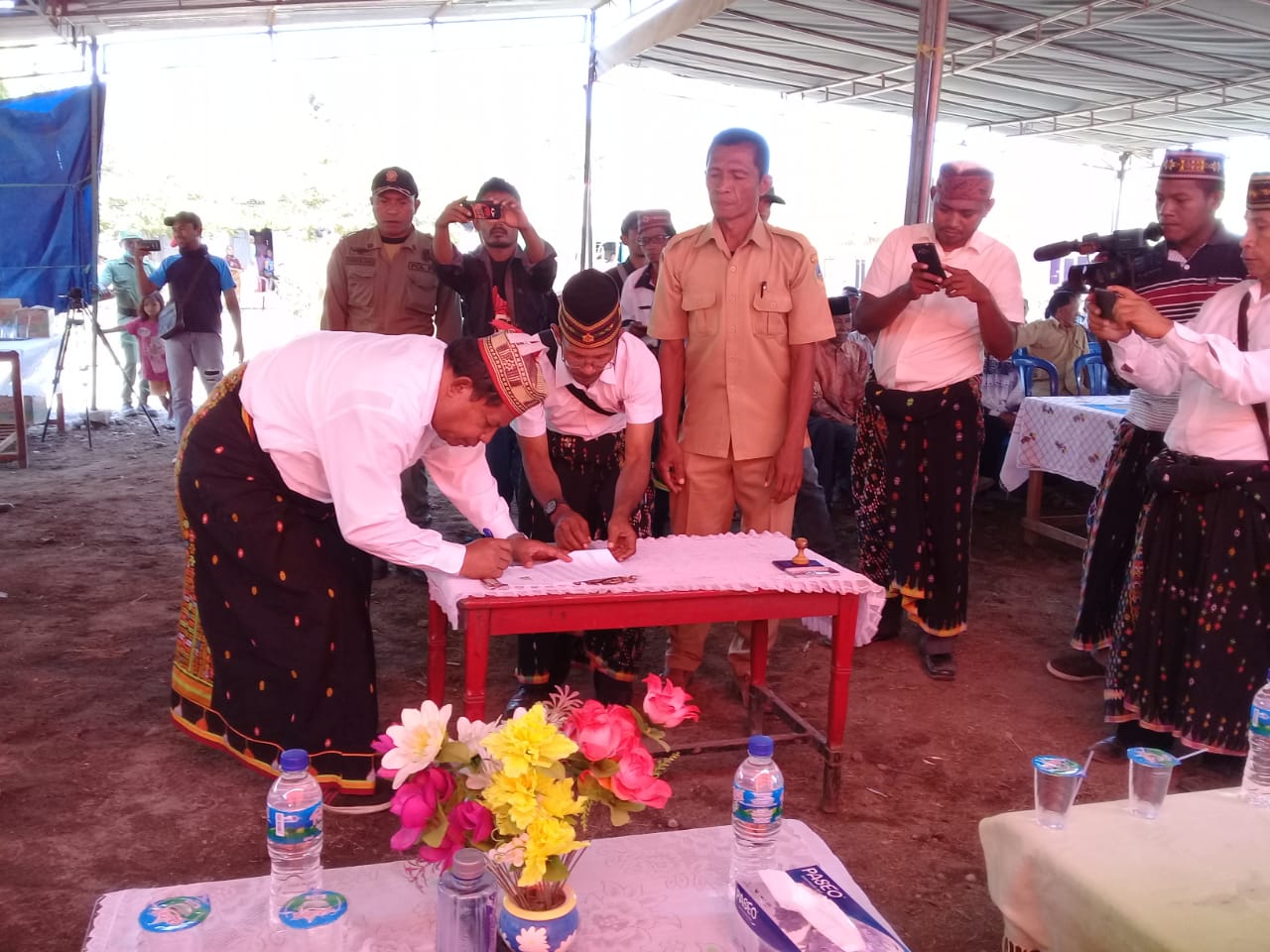 Bupati dan wakil Bupati Matim langsung menandatangi surat berita acara penyerahan tanah dari Pemerintah Desa Bamo ke pihak Pemerintah