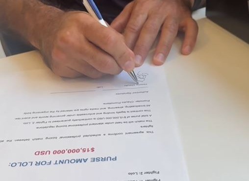 "Lolo, saat aku akan menghajarmu, namamu akan terukir di wajahmu, Lolo. Lihat, semuanya sudah siap - sarung tangan sudah siap, kontrak sudah siap.