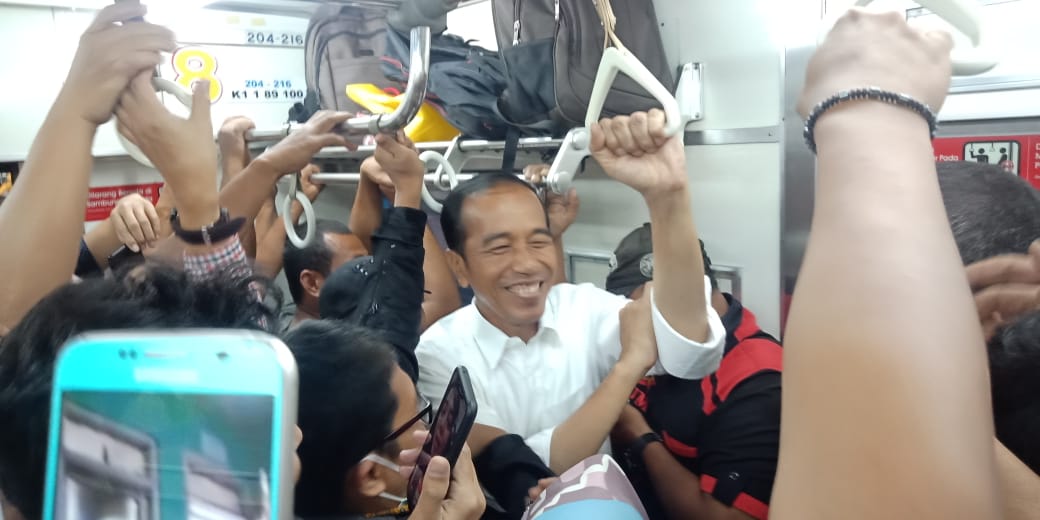 Presiden RI Joko Widodo (Jokowi) bersama penumpang lainnya dalam kereta commuterline, menuju Istana Bogor Rabu (6/3/2019) (Foto; Staf Kepresidenan)
