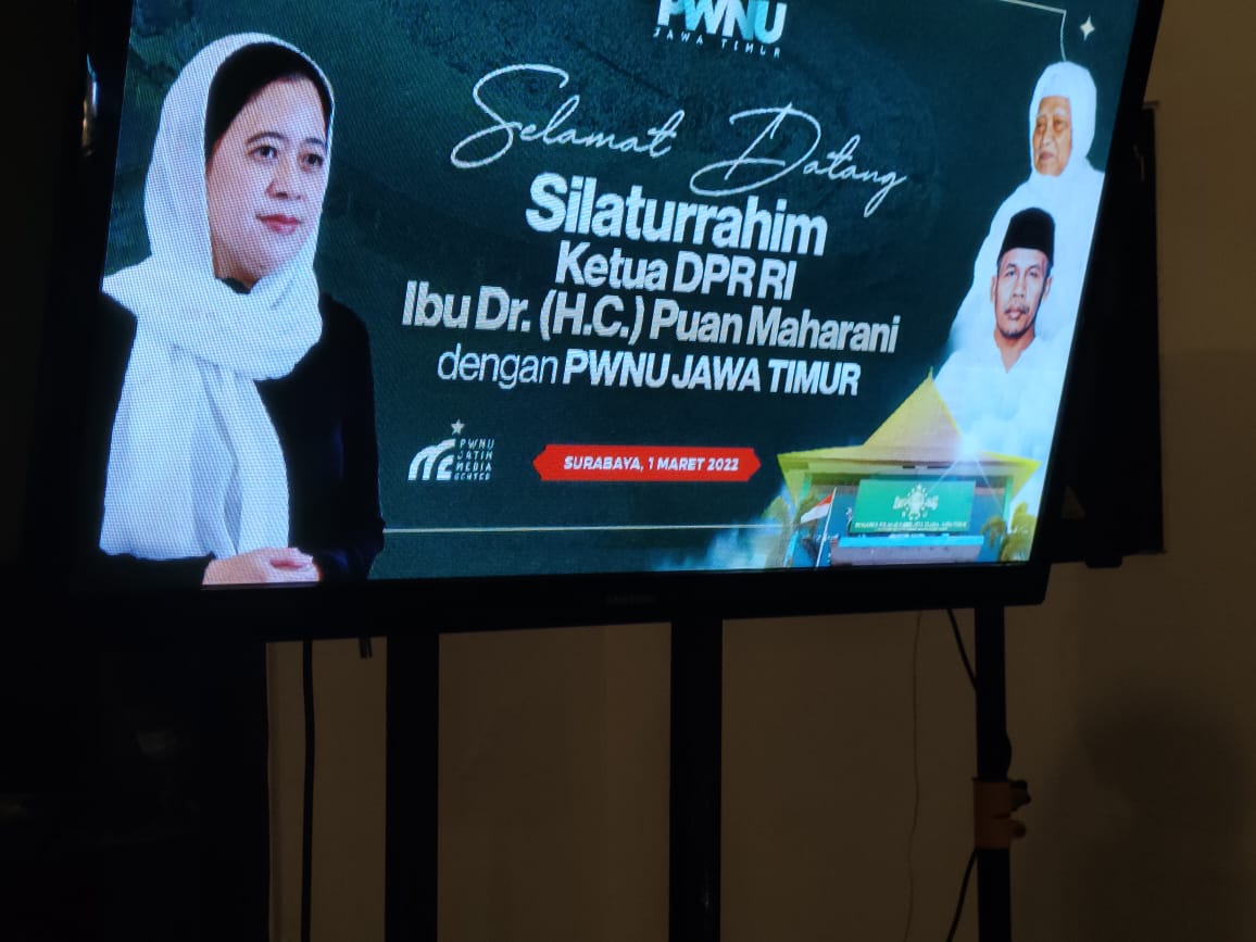 Ketua DPR RI sekaligus Ketua DPP PDI Perjuangan Puan Maharani melakukan silaturahmi dengan jajaran Pengurus Wilayah Nahdlatul Ulama (PWNU) Jawa Timur, di Kantor PWNU, Jl. Masjid Al Akbar Tim No.9, Gayungan, Surabaya, Selasa (1/3/22).