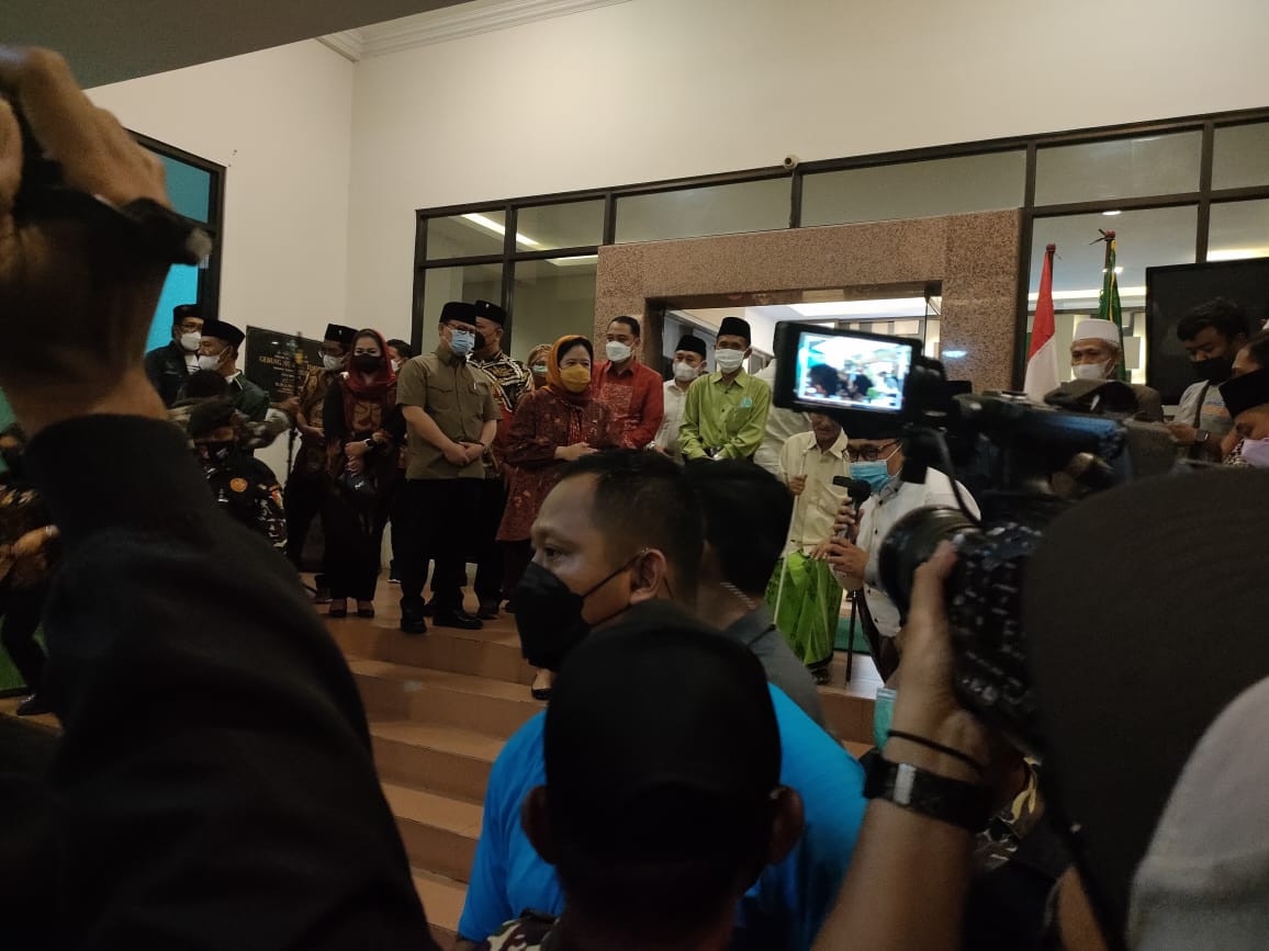 Tiba di kantor PWNU, Puan dan rombongan disambut Ketua PWNU Jatim KH Marzuki Mustamar bersama jajaran pengurus PWNU setempat.