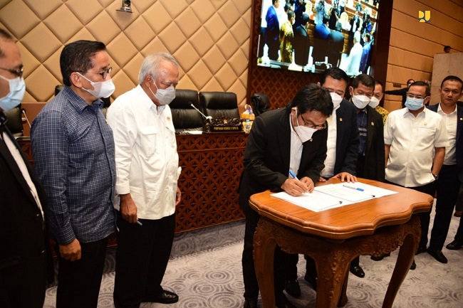 Pemerintah dan Komisi V DPR RI sepakat untuk membawa Rancangan Undang-Undang (RUU) tentang Perubahan atas Undang-Undang Nomor 38 Tahun 2004 tentang Jalan dalam Pembicaraan Tingkat II/Pengambilan Keputusan ke Rapat Paripurna DPR RI. Hal tersebut disepakati dalam Rapat Kerja Komisi V DPR RI yang dipimpin Ketua Komisi V DPR Lasarus dan dihadiri Menteri PUPR Basuki Hadimuljono beserta sejumlah perwakilan dari Kementerian/Lembaga terkait, Rabu (1/12/2021).