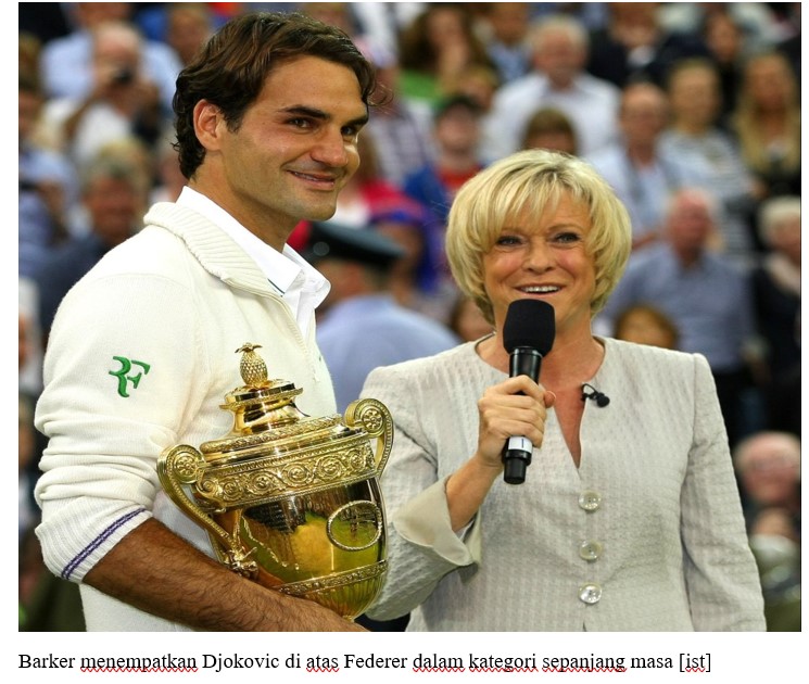 "Tapi Novak Djokovic, tidak perlu diragukan lagi. Di era yang dia jalani, bersama Rafa [Nadal], Roger, Andy [Murray], untuk memenangkan Grand Slam yang dia menangkan berkali-kali, itu sungguh luar biasa," ujar Barker.