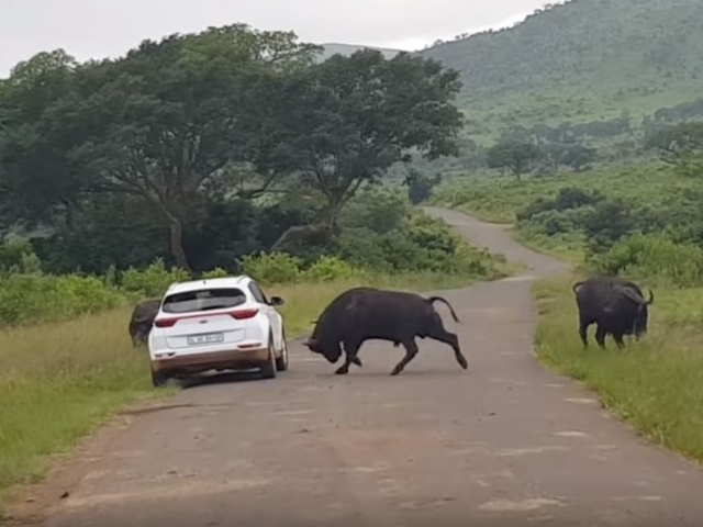 Kerbau dengan Agresif nya Berusaha Menerjang Mobil [ist]