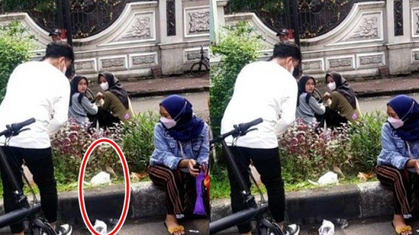 Saat tiba di depan Solo Grand Mall (SGM), Gibran terlihat berhenti dan memunguti sampah-sampah plastik minuman yang ada di taman.
