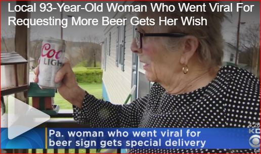 Wanita berusia 93 tahun mendapat Coors yang lumayan. Pengiriman ringan setelah permintaan viral untuk bir lagi